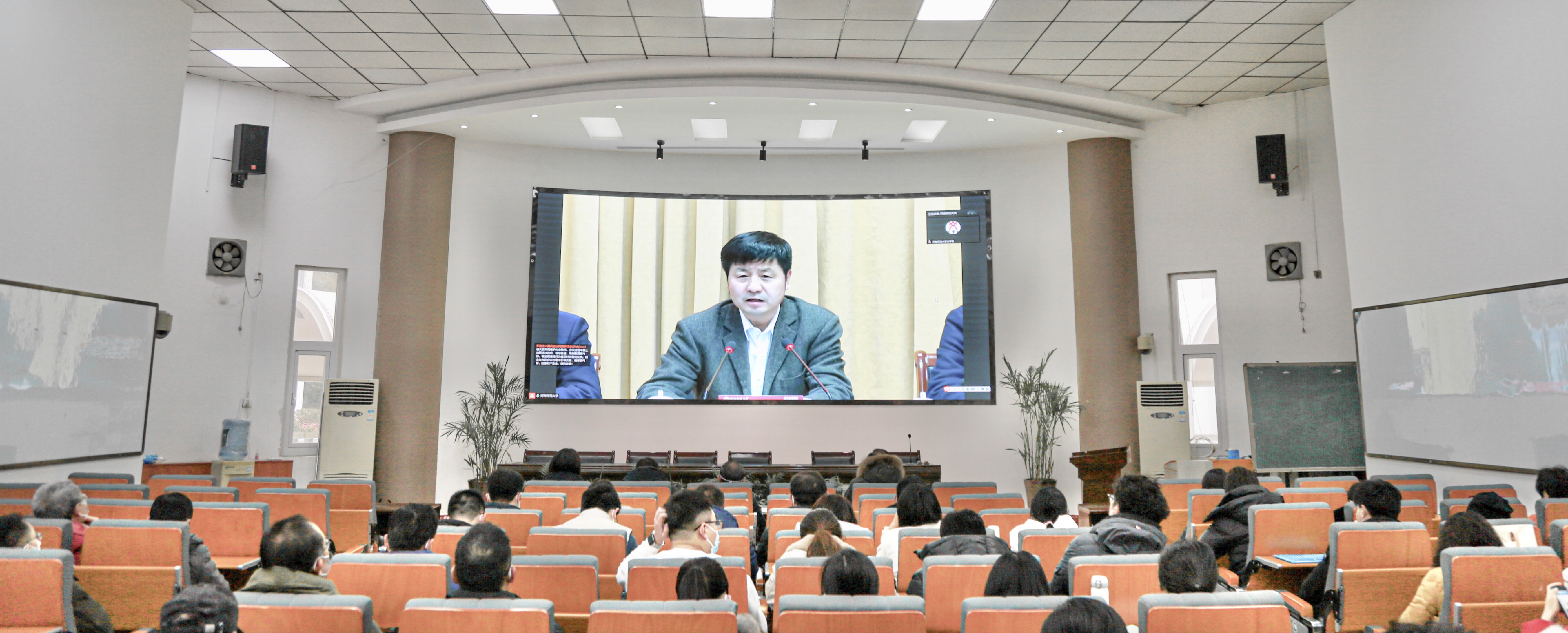 2月10日下午,我校新学期工作会议在党校教室召开。校领导王宗敏、梅宪宾、张尚字、李雪山、马治军、刘玉芳、江智勇、宋晔、聂国兴、杨亚东出席会议。会议采用线上线下相结合方式进行,各单位主要负责同志在党校教室主会场参会,各单位班子成员和全体教职工在本单位分会场参会。会议由校党委副书记、工会主席梅宪宾主持。