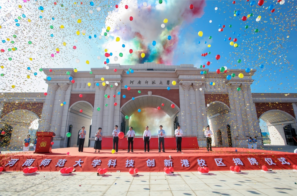 出席仪式的领导嘉宾为河南师范大学科技创新港校区揭牌