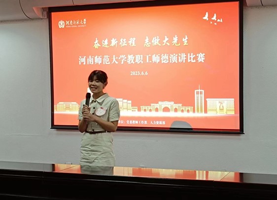 学为人师树形象,德为示范正行风。为深入贯彻党的二十大精神,持续加强新时代师德师风建设。6月6日上午,财务处职工陈彦娜参加了由党委教师工作部 人力资源部组织举办的以“奋进新征程 志做大先生”为主题的师德主题演讲比赛,并喜获比赛二等奖。