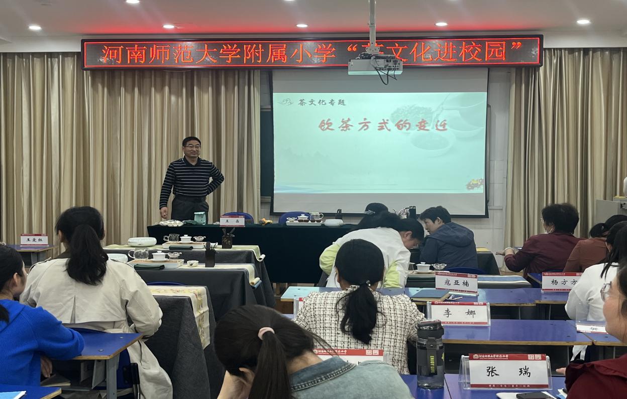 在附属小学四楼会议室举行了一场茶文化专题讲座《饮茶方式的变迁》,由河南师范大学旅游学院国家一级茶艺师王晶老师主讲。王老师从古代到现代饮茶方式的变迁介绍了茶的发展历史及品饮方式,最后带领附属小学教师现场体验了功夫茶的冲泡和品饮,使老师们亲身体会了中国茶文化的渊源和魅力。