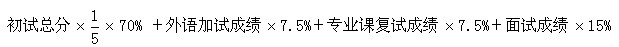 1. 复试成绩占考生最后总成绩的30%,其中外国语加试7.5%,专业课考试7.5%,面试15%(音乐与舞蹈学、美术学两专业可依据相应专业特色调整复试各部分比例,具体办法由学院制订),考生最后成绩为(各项成绩四舍五入成整数,最终计算结果保留一位小数):