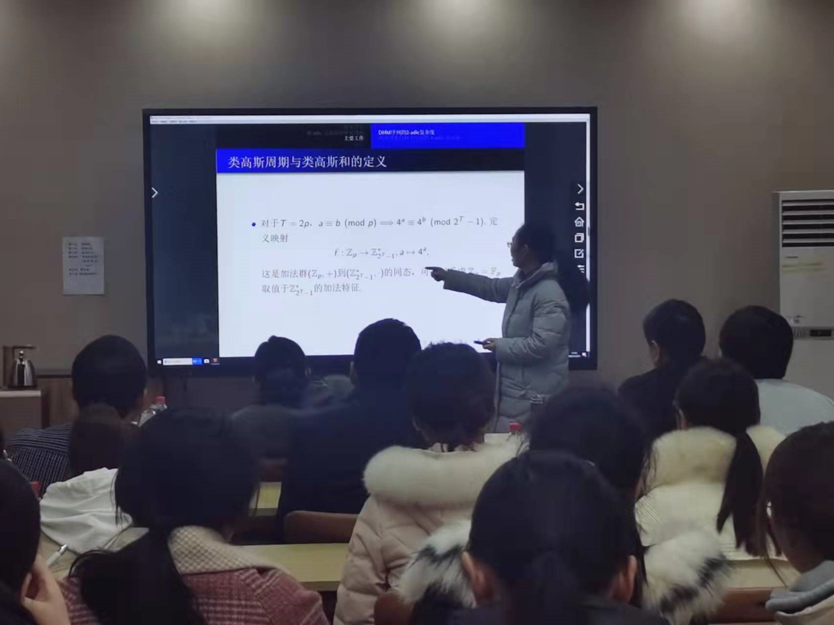 杨名慧老师在报告中介绍了序列密码这一问题研究的来源、加密过程。杨老师给出了计算Z/(N)上的周期序列的N-adic复杂度的最新研究方法,通过改造类高斯周期与类高斯和,从而确定了之前无法计算的几类最优自相关序列N-adic复杂度和N>2时的情况,最后给出两类理想的自相关序列的4-adic复杂度。