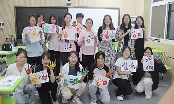 活动现场,同学们沉浸在绘画石膏娃娃和印手掌的欢乐氛围中。在石膏娃娃的彩绘活动中,同学们尽情想象,天马行空,将内心五彩斑斓的世界涂在石膏娃娃上,用丰富多彩的颜料和细腻的画笔赋予其生命,在石膏娃娃的身体上绘制出独属自己的独特风格和故事。在活动结束后,各小组成员共同展示创意作品,讲述创作理念,并拍照打卡,将美好瞬间记录下来。在我的生命色彩表达环节中,同学们结合个人想法,将自己的手掌涂满喜欢的颜色,与好朋友一同将手掌印在宣传墙上,并写上自己的名字,拍站留念,留下属于他们的美好回忆,也感受来自他人的温暖和力量。