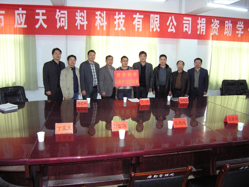 商丘市应天饲料科技有限公司是一家知名的民营企业,一直在倡导“取利于民,服务社会”的理念,积极主动地参与社会公益事业。为了让学生能够安心学习,无后顾之忧,水产学院领导开拓思路,经过多方协调和努力,已经与五家企业达成为我院研究生、本科生设立奖助学金的意向。