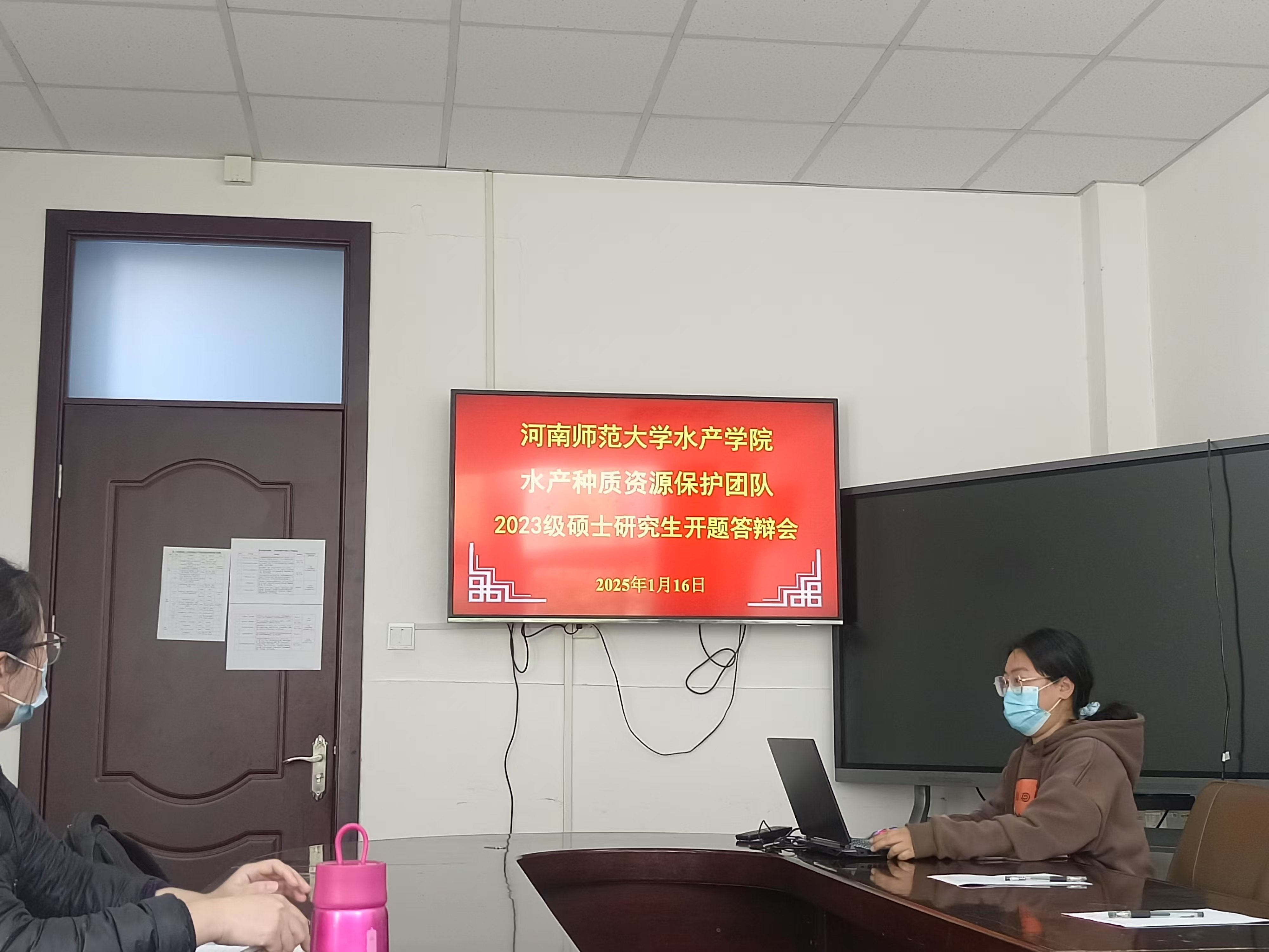 2025年1月16日,水产种质资源保护科研方向的2023级硕士研究生开题答辩会在水产学院西区215会议室顺利举行。祝国荣、汤永涛(线上参会)、金锦锦3位老师以及2023级、2024级全体研究生列席此次会议。