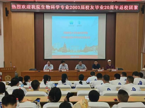 为促进同学之间交流,为学院百年华诞庆祝,7月22日,生命科学学院2003届生物科学专业毕业二十年返校聚会座谈会在生物报告厅举办。发展规划处处长、校友与基金工作办公室主任苏现伐,生命科学学院院长余国营,党委副书记朱国超,任课教师代表牛红星老师,姬生栋老师以及50余名校友参加此次座谈会。座谈会由2003届校友于倩主持。