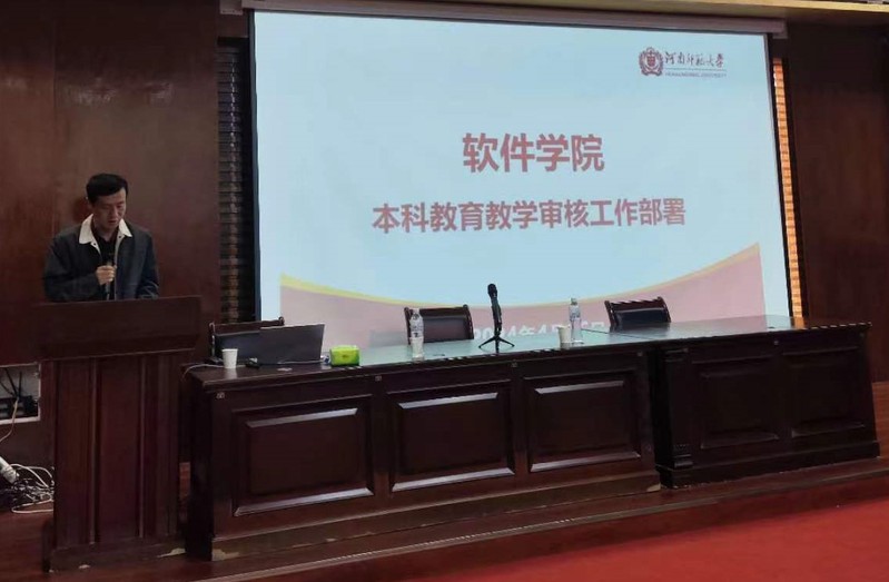2024年4月16日下午,软件学院召开了本科教育教学审核评估推进会。参加会议的人员包括软件学院党委书记马新峰等班子领导以及全体教职工。会议由教学副院长袁培燕主持。