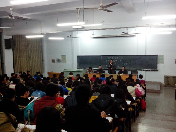 11月15日晚上7:30分,新五五四教学楼107教室座无虚席,由教务处主办的本专科学生代表座谈会在这里举行。座谈会以“收集教学建议、提高教学质量”为主题,各学院各年级的学生代表200余人参加了座谈会。教务处陈广文处长及部分科室负责人出席了座谈会,座谈会由教务处副处长郭海明主持。