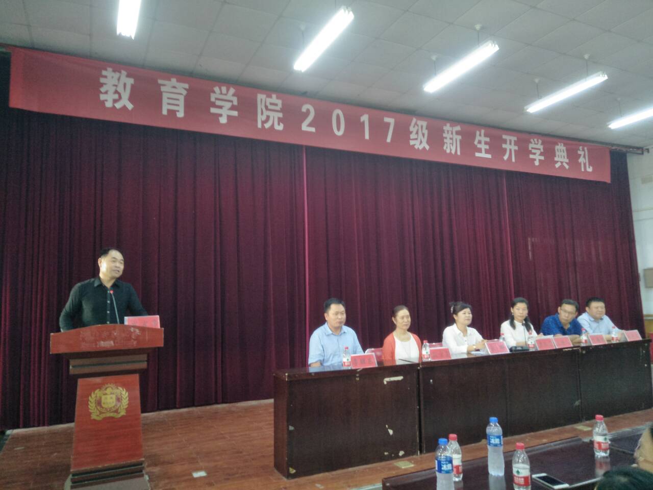 金秋九月,丹桂飘香。9月11日中午,教育学院于万人餐厅三楼多功能报告厅举办2017级新生开学典礼,教育学院院长宋晔,党委副书记康淑霞,副院长段宝霞、叶海智、李醒东、朱守宏与各年级辅导员出席本次典礼,并邀请我院90届校友参加本次活动。2017级新生们积极参与,认真聆听,现场座无虚席,热闹非凡。