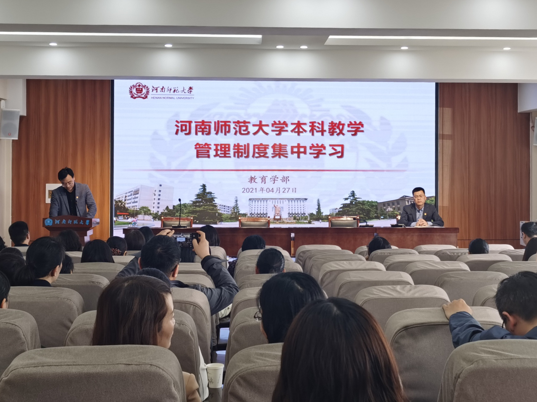 为进一步加强教学管理,使学部教职员工增强人才培养质量是学部发展生命线的观念,主动做好教学服务工作,形成良好的教风,持续提升课堂教学质量,4月27日下午,教育学部“河南师范大学本科教学管理制度”集中学习会议在田家炳教育书院819会议室举行。集中学习会议由教育学部党委书记陈勇主持,全体教师参加了此次学习。