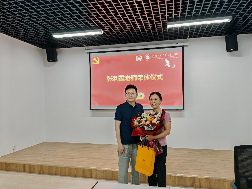 沧桑岁月流年换,不负韶华晚霞红。仪式伊始,王川为张利霞老师送上鲜花和纪念品,并发表致辞。他指出,张利霞老师在三十余年的从教生涯中,见证了学院从无到有、从小院到大院的发展过程,为学院的稳定发展和学生的成长成才贡献了力量、奉献了青春年华,向张利霞老师致以崇高的敬意和衷心的感谢!他希望青年教师要以张利霞教师为榜样,以饱满的热情、过硬的本领,扛起立德树人的重任,努力续写软件学院事业发展的新篇章。随后,张利霞老师发表荣休感言,对学院的支持及师生的关心表示衷心感谢,祝愿软件学院在今后的发展过程中,继续凝聚师生力量,发扬龙马精神,再创新的辉煌。最后,院党委书记马新峰对张利霞老师躬耕杏林、润育桃李的毕生奉献表示崇高敬意和诚挚感谢,希望张利霞老师未来的岁月丰富多彩,继续关心支持学院工作,为学院事业高质量发展贡献力量。仪式气氛简约隆重、温馨感人。