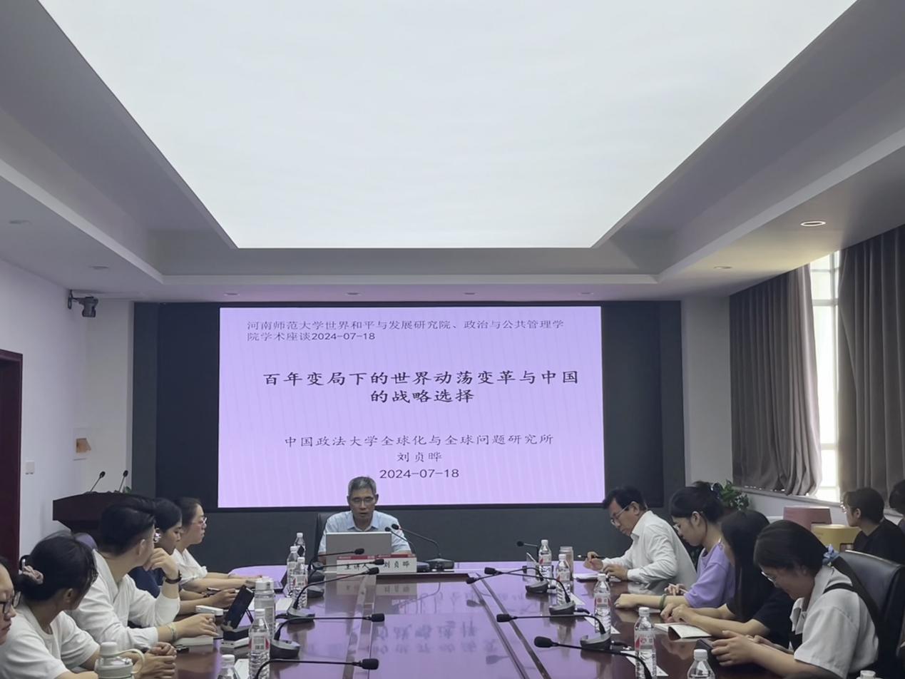 7月18日下午,应世界和平与发展研究院邀请,中国政法大学全球化与全球问题研究所教授、国家社科基金重大专项课题首席专家刘贞晔为学院师生作了题为《百年变局下的世界动荡变革与中国的战略选择》的学术报告。学院教师,研究生,本科生参与。报告由世界和平与发展研究院院长席来旺教授主持,