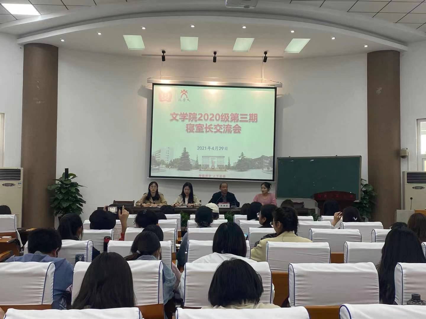 4月29日中午,文学院在报告厅召开2020级第三期寝室长工作交流会。学院相关负责人、2020级兼职辅导员及全体寝室长参加本次交流会。