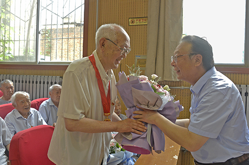 赵国祥希望,全校教职工党员要传承好“一次入党、一生为党”的初心和使命。继承老同志的光荣传统,学习他们的优良作风,坚定不移感党恩、听党话、跟党走,秉持“精育良才、教育报国”的初心,践行立德树人的使命和担当,站稳三尺讲台,守牢工作岗位,充分发挥党员先锋模范作用,为党和人民培养更多堪当民族复兴大任的时代新人;广大青年学生要传承好“身在校园、胸怀祖国”的理想与抱负。要以“光荣在党50年”的老同志为标杆和榜样,学习他们坚定的理想信念和无私的奉献精神,时刻牢记时代赋予的光荣使命,保持昂扬向上的朝气、攻坚克难的锐气,让青春在为祖国、为民族、为人民、为人类的不懈奋斗中绽放绚丽之花。