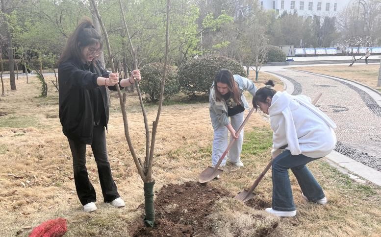 植树现场,师生们分工合作,大家挥锹铲土、放入树苗、填土压实、提水浇灌,每个程序都做得认真仔细、一丝不苟。秦法跃一边植树一边与参加活动的同学交流,他希望全校各族师生要像石榴籽一样紧紧抱在一起,讲好民族团结动人故事,珍视民族团结真挚感情,争做党的民族政策宣传员,民族团结进步的践行者,让民族团结之树枝繁叶茂、长青长盛。