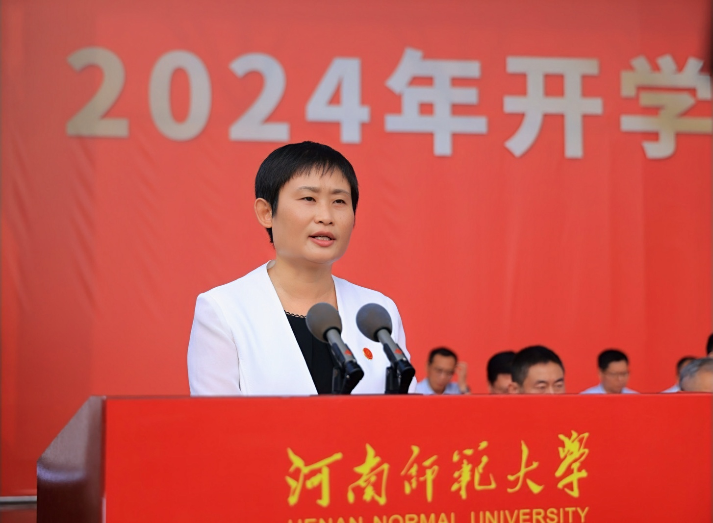 校党委书记、校长冯淑霞以《勇于创新、追求卓越,做引领未来的师大人》为题发表讲话。她代表学校向全体新生表示由衷祝贺和热烈欢迎,向各位新生家长及亲友致以诚挚问候和衷心感谢。她表示,从今天起,同学们就是真正的“师大人”了,希望同学们能够在未来的日子里逐步认识师大、读懂师大、融入师大。