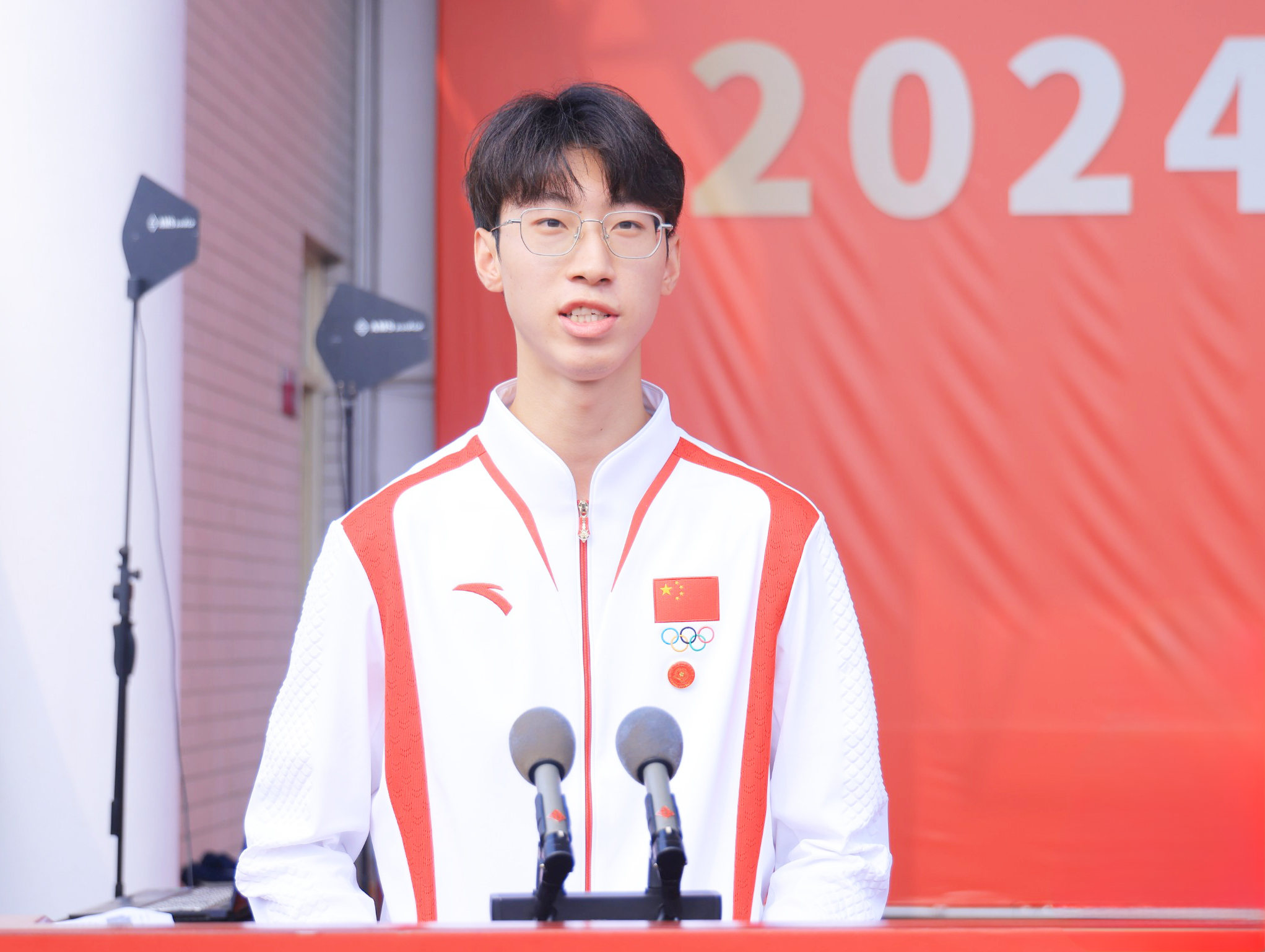 2024级研究生代表、巴黎奥运会男子跆拳道68公斤级铜牌获得者、体育学院梁育帅分享了自己征战奥运赛场、为国争光的奋斗历程,鼓励同学们以更加坚定的信念和饱满的热情,共创百年师大更加辉煌的明天。