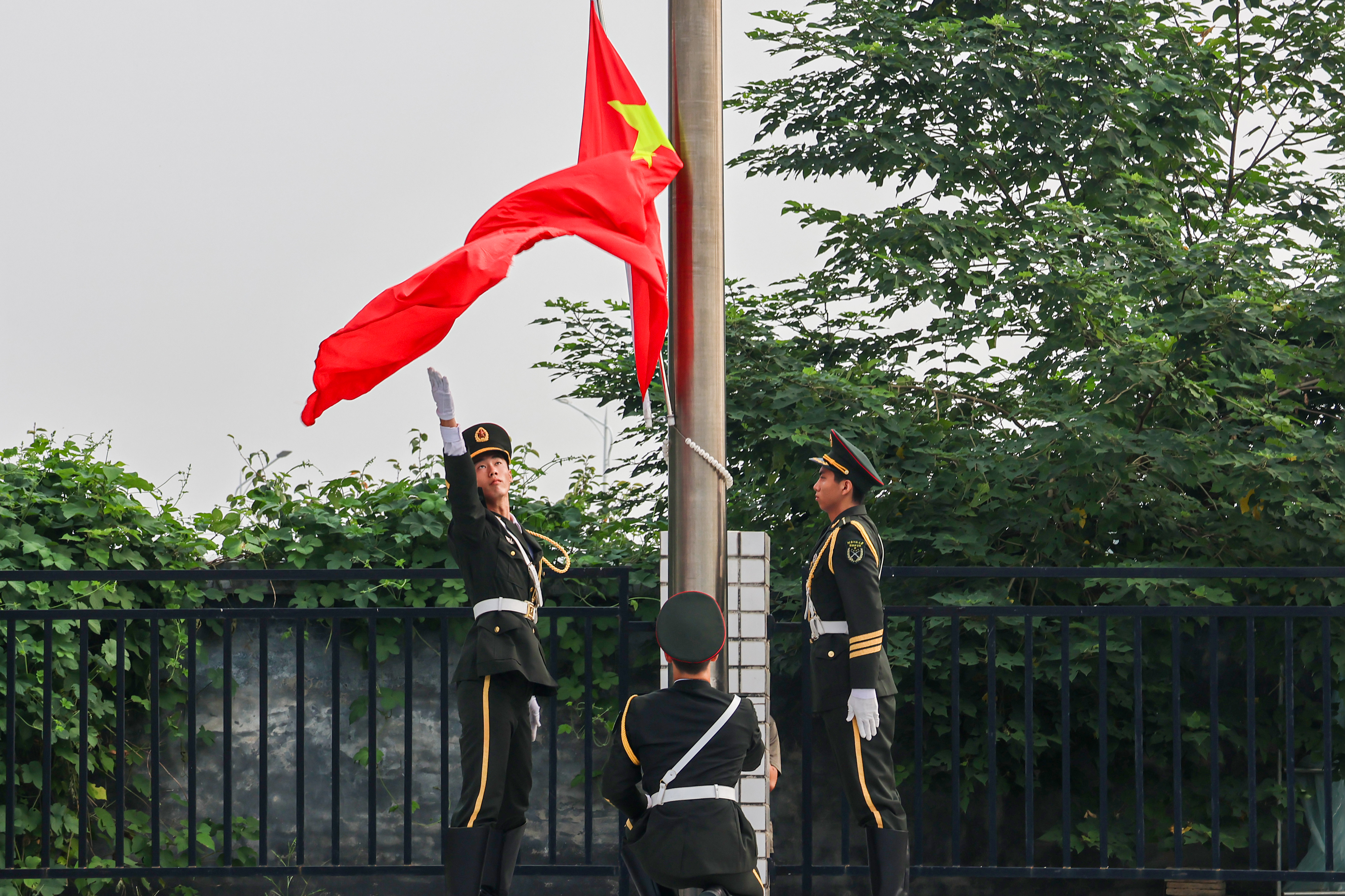 8时整,全体起立,奏唱国歌。开学典礼在激昂庄严的《义勇军进行曲》中正式拉开帷幕。