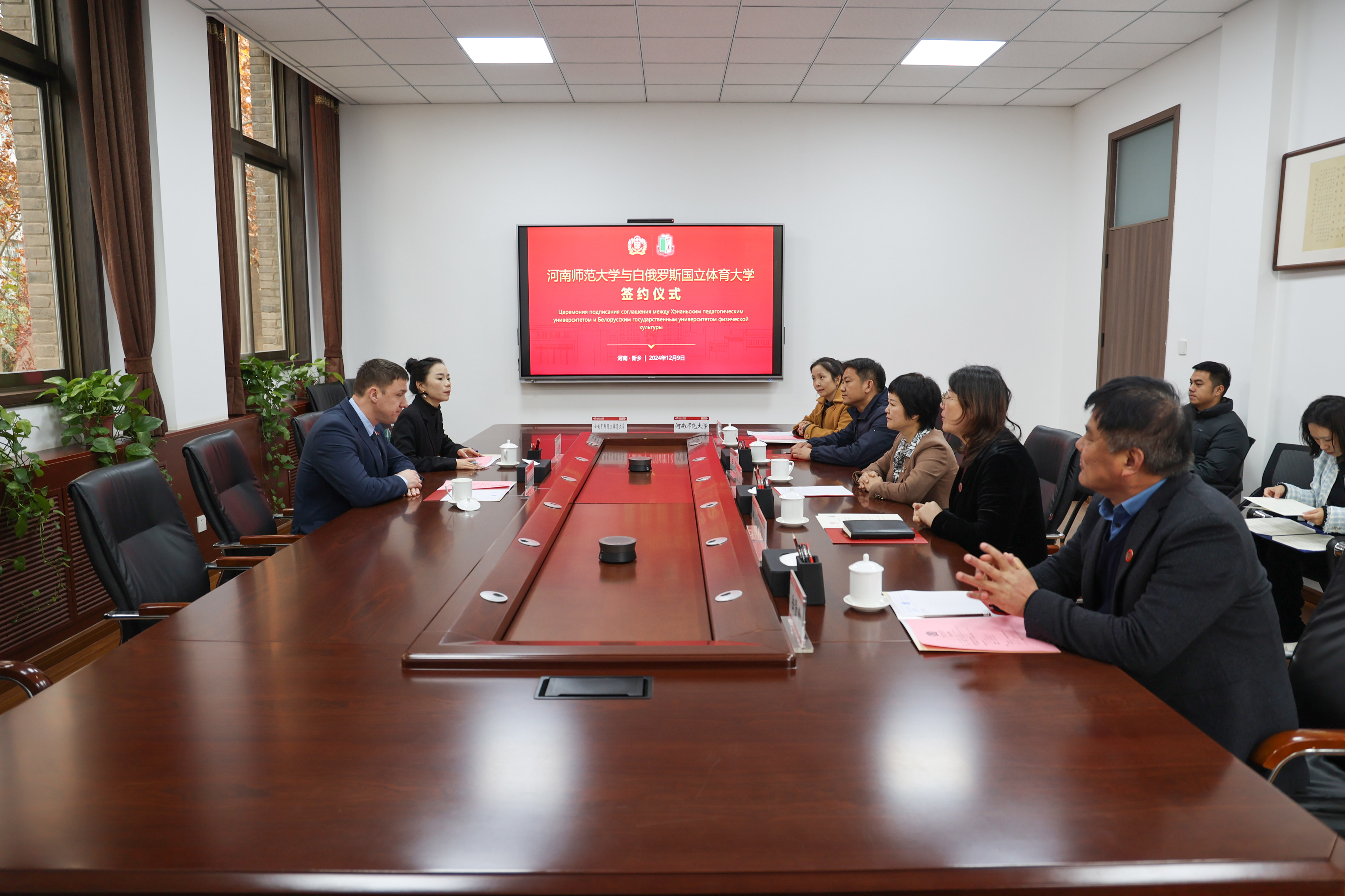 弗拉基米尔·弗拉基米拉维奇对我校的热情接待表示感谢,并高度评价了我校出台的2024-2025师生国际交流提升计划。他表示,该计划对推进两校持续深入合作发挥了积极作用,白俄罗斯国立体育大学一直高度重视与河南师范大学的合作关系,并期待进一步加强师生间的互访与交流,共同探索高层次人才联合培养与科学研究的新途径。