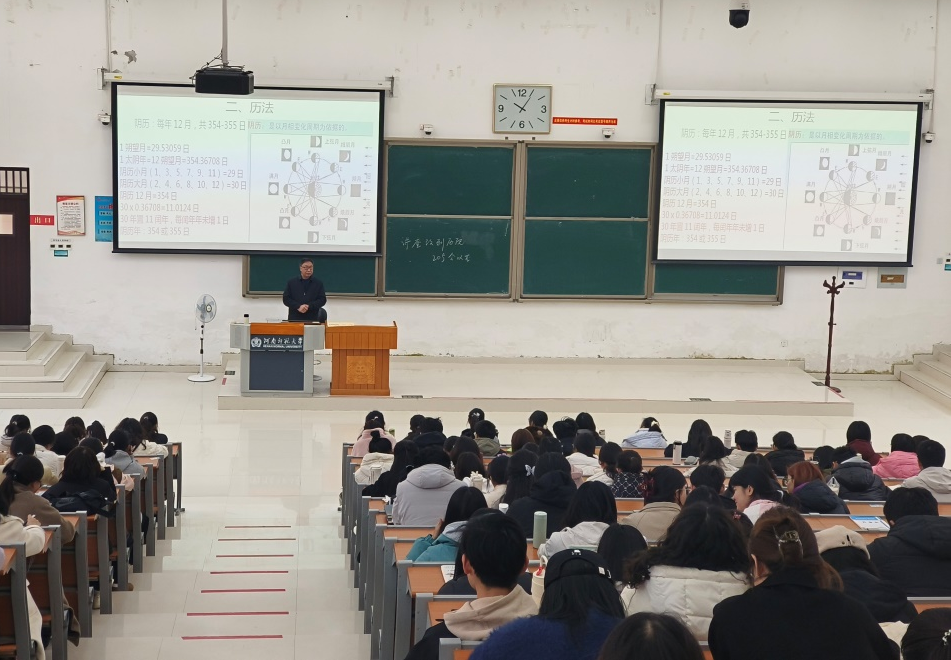 李峰以“日月时年的循环”为切入点,从循环观念、五德之说等方面深入浅出地讲解了中国传统历法的演变过程,引导同学们挖掘节日文化背后所蕴含的社会历史信息,进一步提升民族自信。李峰表示,中国传统节日是中华优秀传统文化的重要组成部分,承载着中华民族的精神追求和文化基因,希望全体同学深入了解中国传统节日文化,传承中华文明,坚定文化自信。