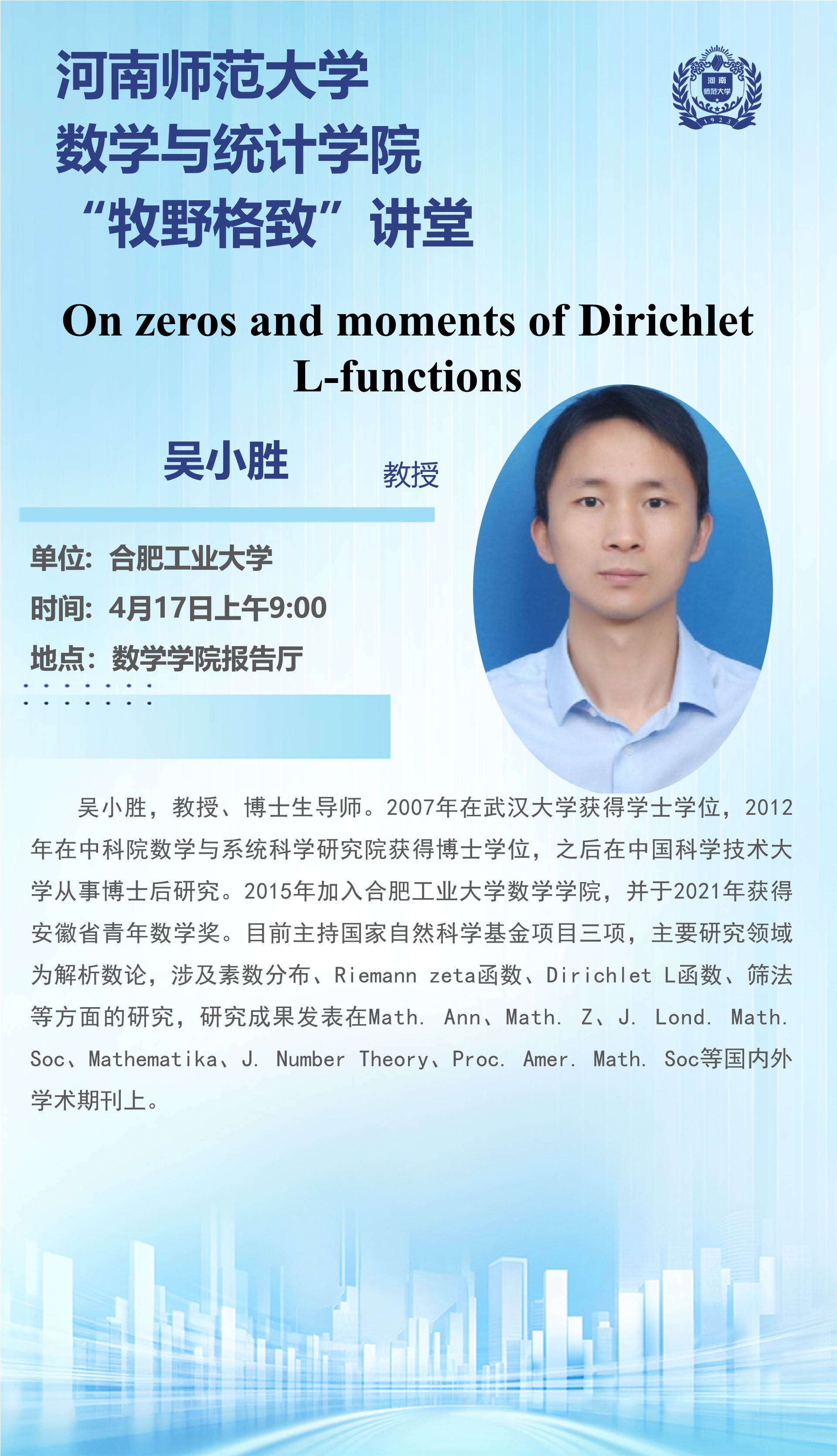 合肥工业大学吴小胜教授将应邀做客“牧野格致”讲堂