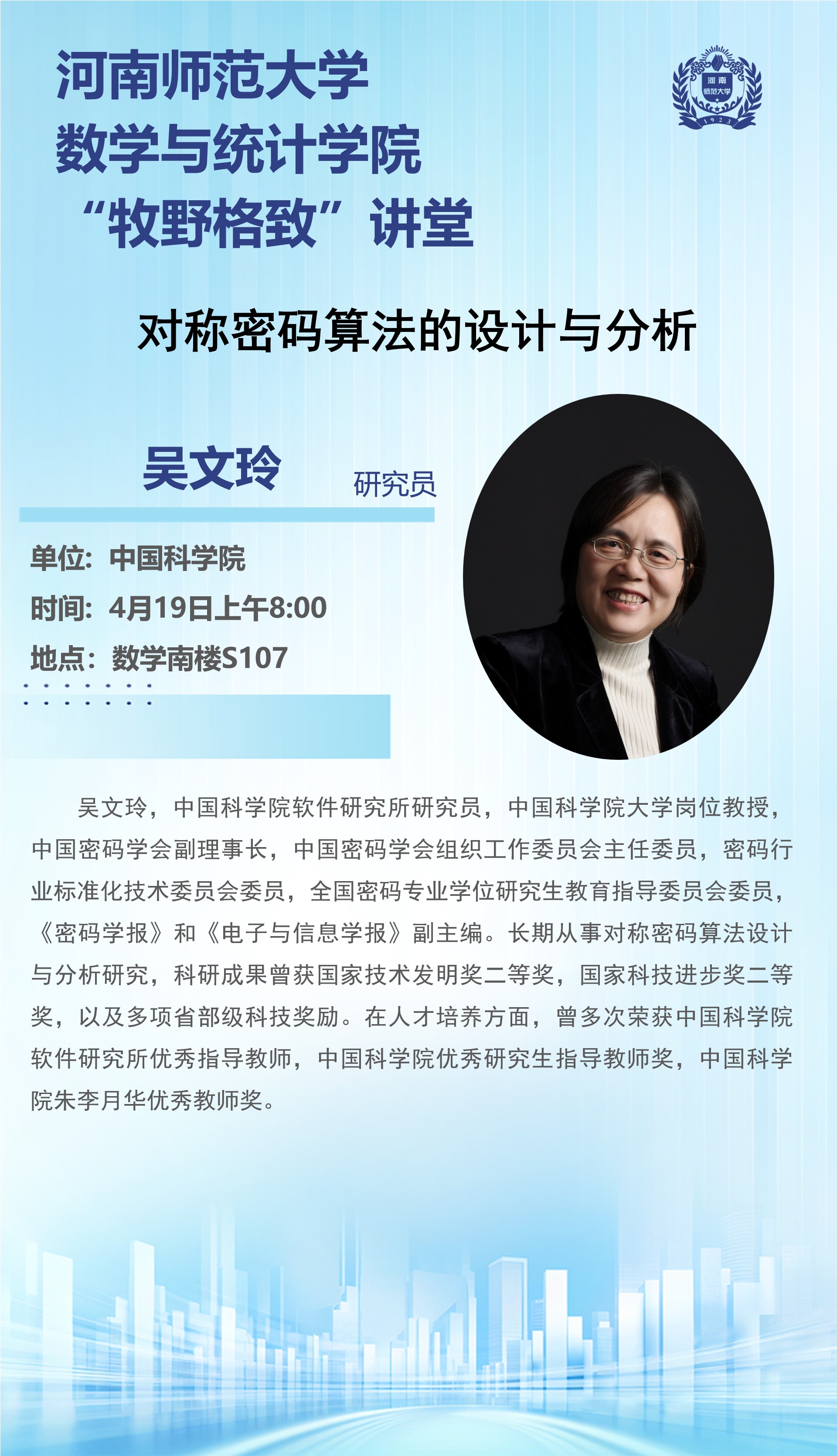 中国科学院软件研究所吴文玲研究员将应邀做客“牧野格致”讲堂