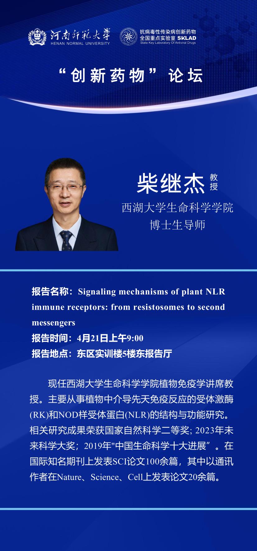 西湖大学柴继杰教授将应邀做客“创新药物”论坛