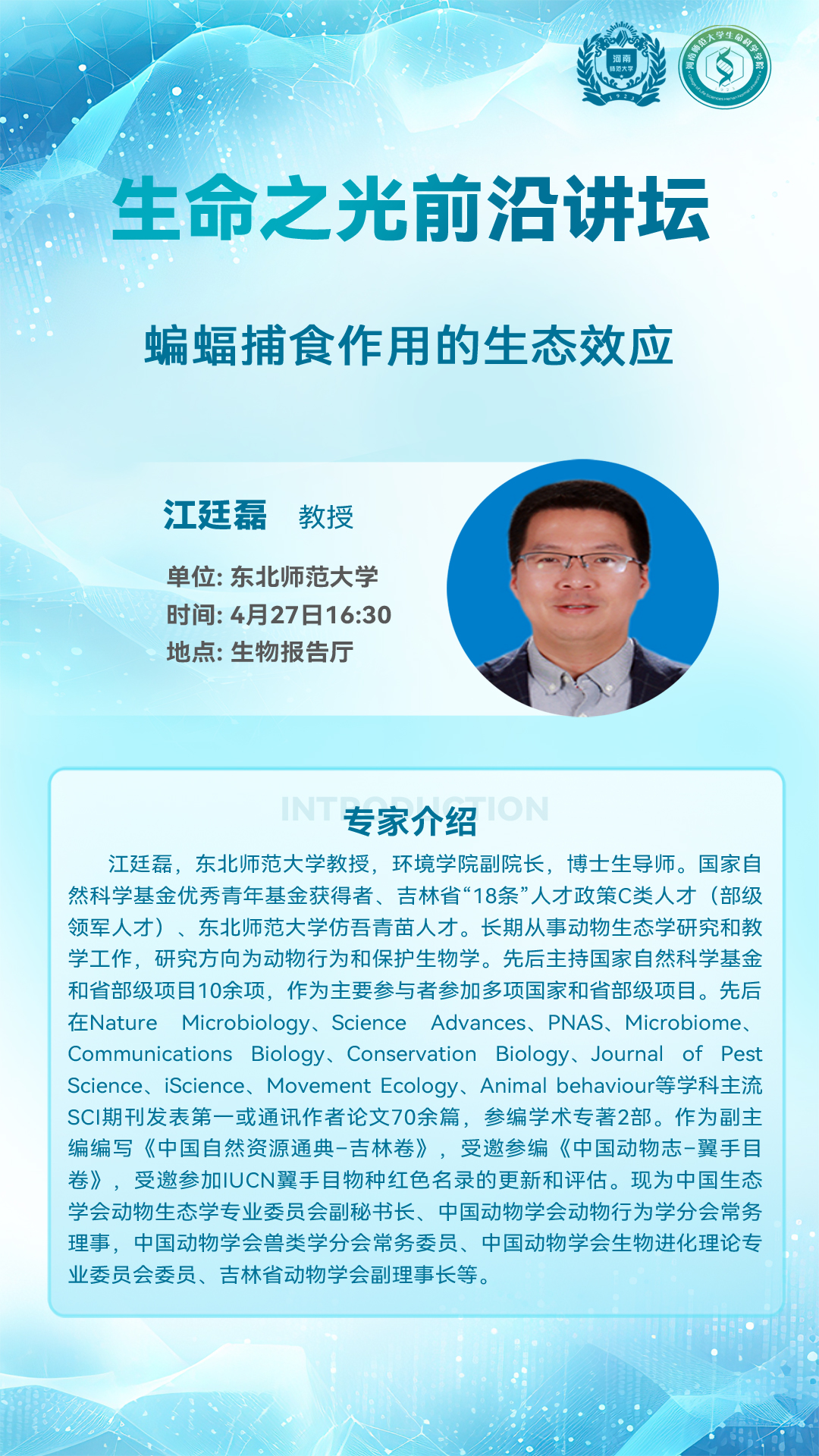 东北师范大学江廷磊教授将应邀做客“生命之光前沿讲坛”