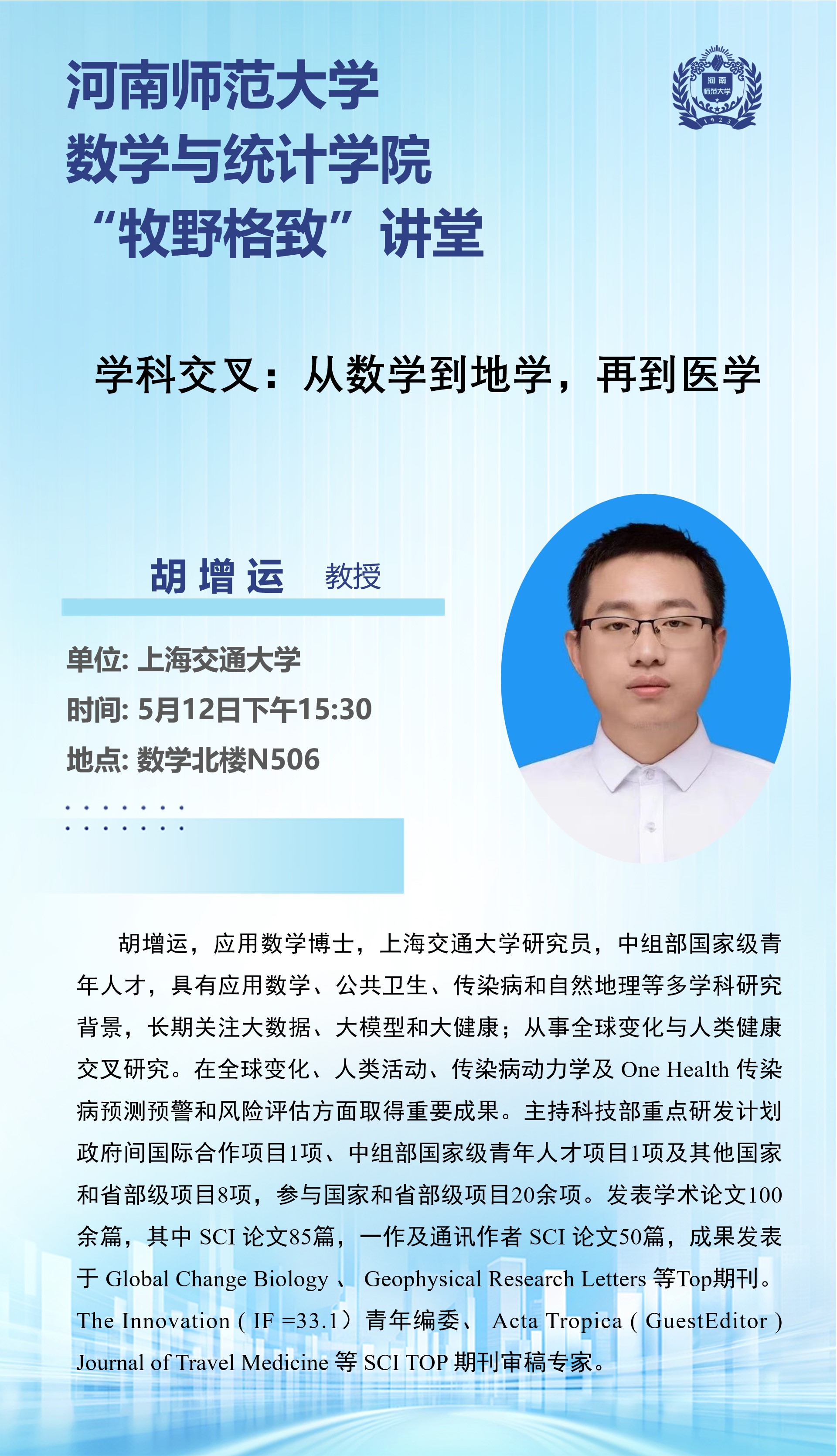 上海交通大学胡增运教授将应邀做客“牧野格致”讲堂