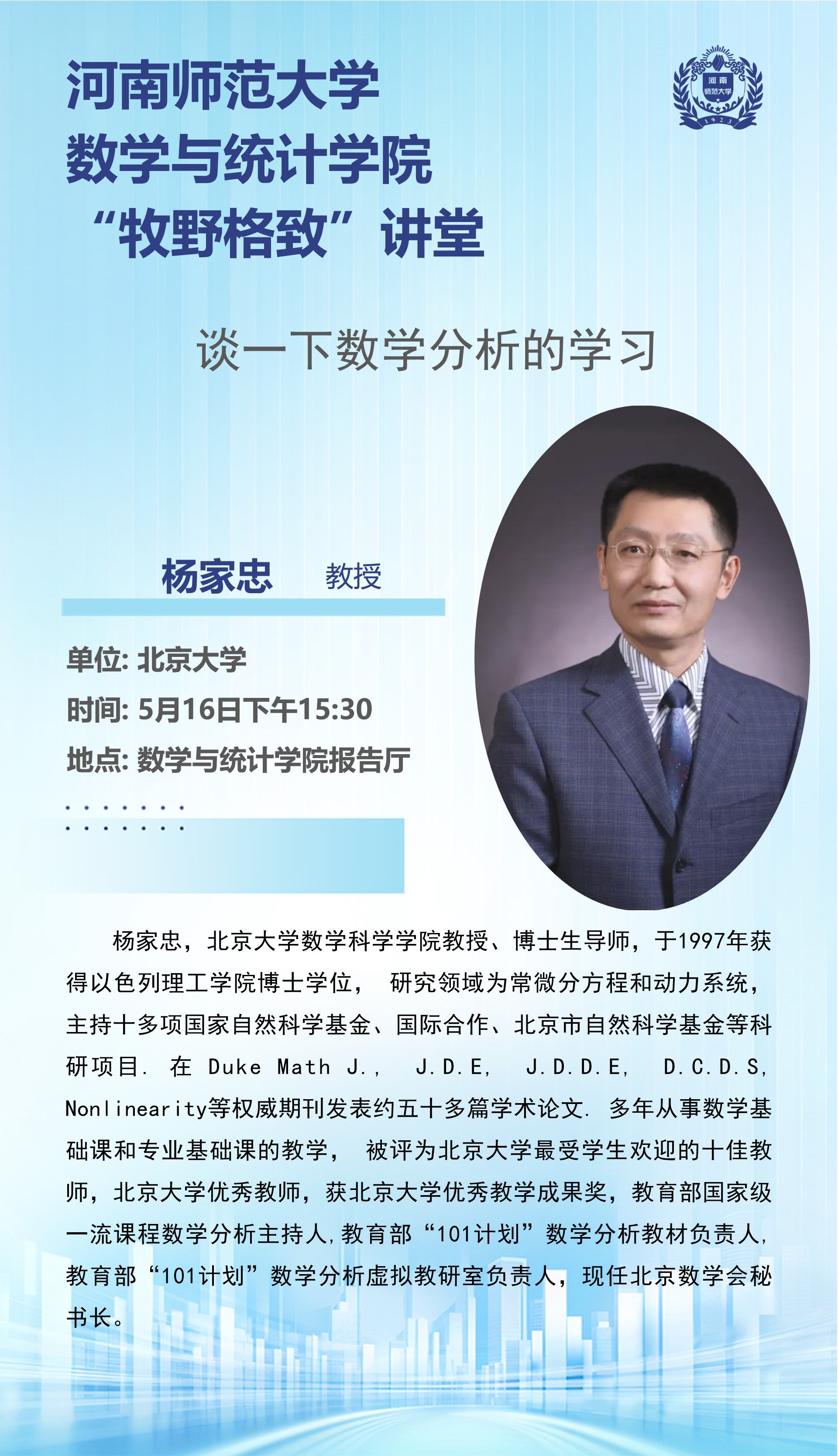北京大学杨家忠教授将应邀做客“牧野格致”讲堂