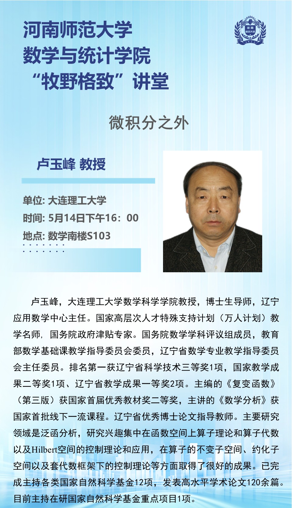 大连理工大学卢玉峰教授将应邀做客“牧野格致”讲堂