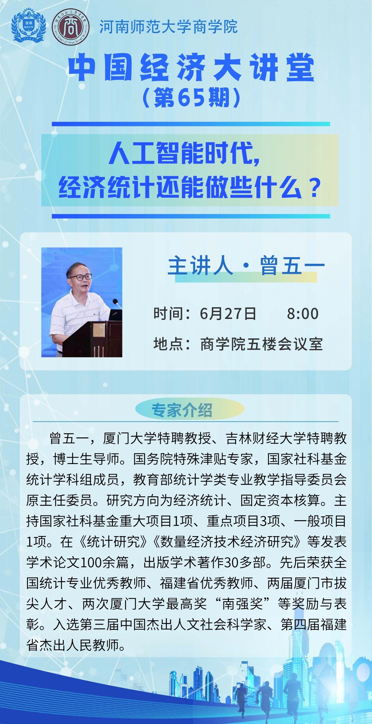 厦门大学曾五一教授将应邀做客“中国经济大讲堂”