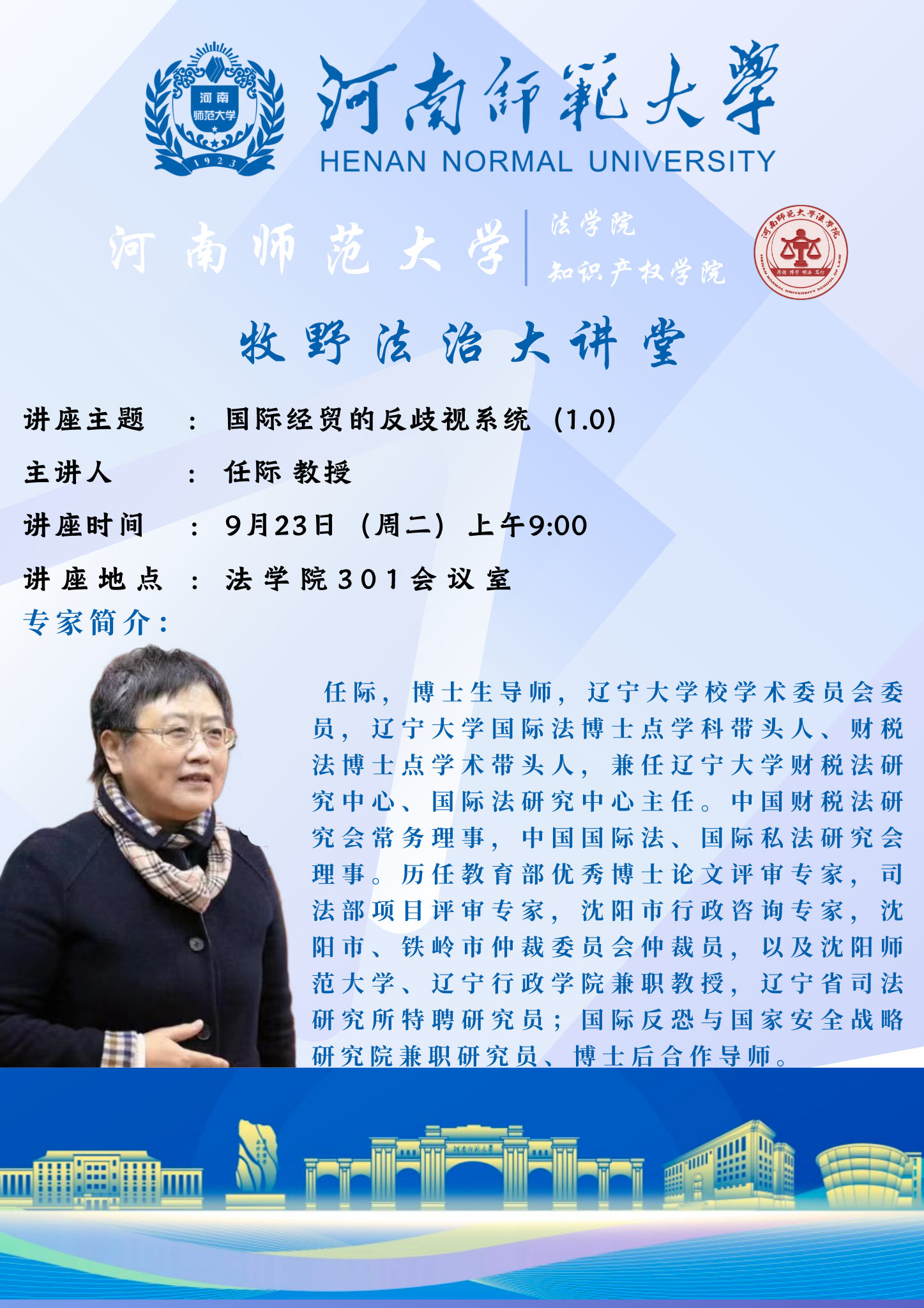 辽宁大学任际教授将应邀做客“牧野法治大讲堂”