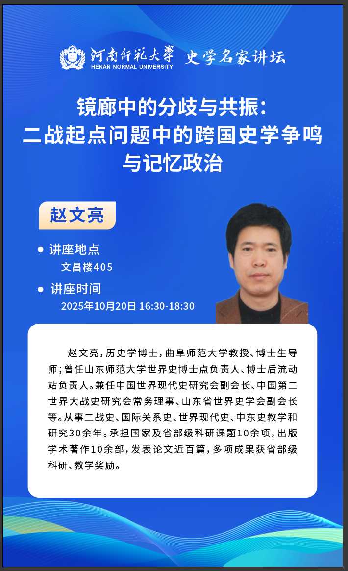 曲阜师范大学赵文亮教授将应邀做客“史学名家讲坛”