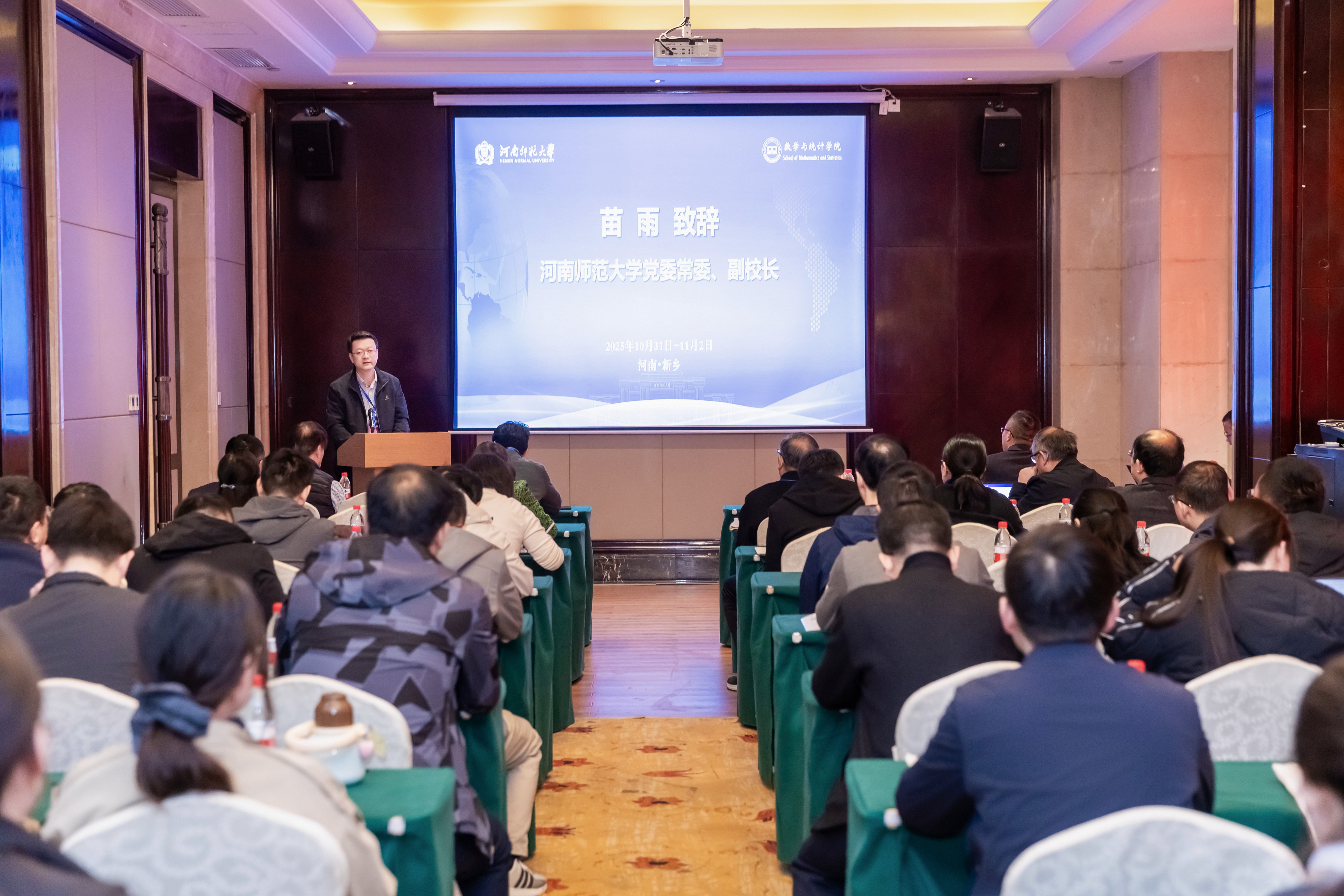 11月1日至2日,2025年新乡图论与组合数学研讨会在我校举办。美国西弗吉尼亚大学赖虹建教授,中国数学会常务理事、安徽大学范益政教授,校党委常委、副校长苗雨教授出席开幕式,来自西安交通大学、西北工业大学、北京交通大学、北京师范大学、南京航空航天大学、南京理工大学等全国各高等院校50余位专家学者,及我校数学与统计学院(密码学院)师生代表共70余人参加开幕式。