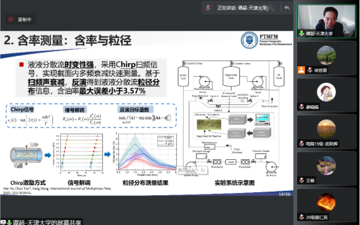 应我院邀请,天津大学谭超教授(博导)于12月17日上午9点在腾讯会议平台上作了题为《多相流过程参数超声测试方法》的专题学术讲座。我院负责人、师生代表100余人参加讲座。讲座由副院长王萌主持。