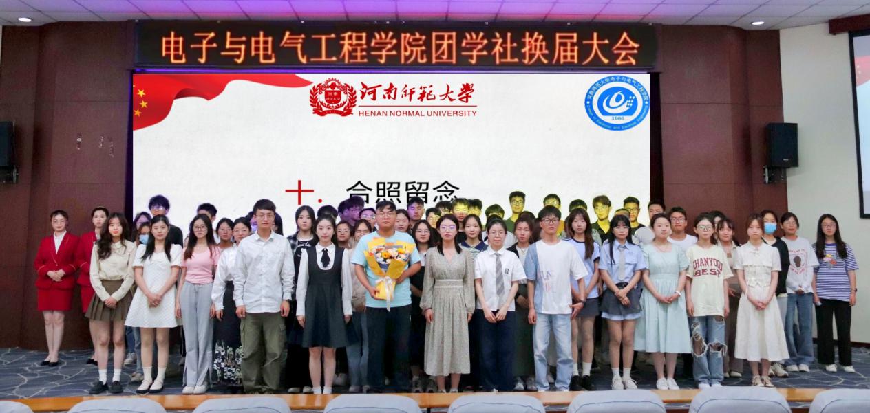 大会在雄壮的国歌声中拉开了序幕。付康康对上一届团学社干部的付出表达了衷心的感谢,同时也对所有已经在任和即将荣任的团学社干部表示祝贺,并提出了建设性意见,希望大家能用行动践行干部使命,携手合作,将团学社提升到一个全新的水平。在轻松愉悦的音乐中,付康康为第七届主席团和部门负责人颁发了荣誉证书。第七届主席团代表申珂对上届工作进行了总结,道出了在团学社工作中的成长。秉承着民主公正公平的原则,第七届社联主席代胜公布了第八届团学社主席团成员、部门负责人名单,希望新成员能够“在其位,谋其政,担其责”。着眼于未来的工作,第八届主席团代表李思睿表示要弘扬传统、开拓创新,积极主动开展对内、对外交流活动,加强学生干部思想教育,以饱满的热情和积极的心态去对待工作,起好带头作用;第八届部门负责人赵慧兰表示会积极主动、以身作则,发挥好团学社作为同学与学院之间桥梁的作用。随后,付康康对新一届团学社做寄语,建议学生干部树立政治意识、责任意识、服务意识,提到队伍建设要从两个方面进行,一是学生干部要加强自身的修养,二是党团组织和学生工作干部要加强对学生干部的培训和指导。会议最后,全体同学合影留念,共同记录下这美好的一刻。