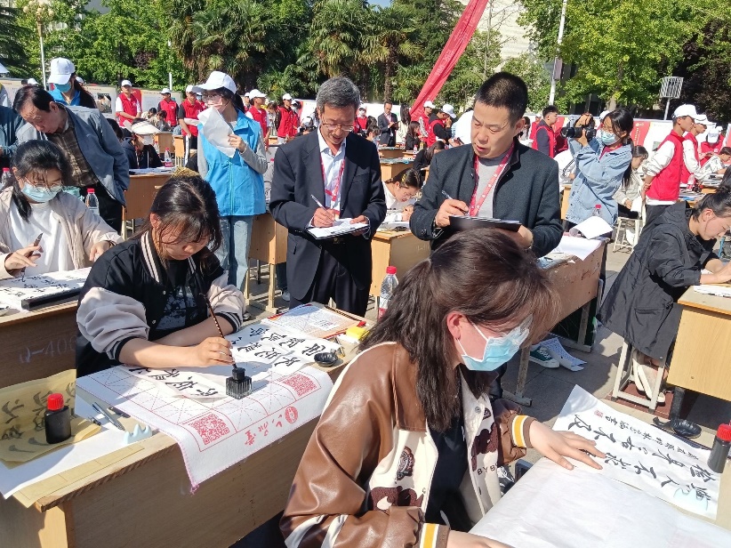 羲之笔下千秋韵,兰亭地上万种情。与会领导、嘉宾到展览区观看各学院优秀书法作品,随后到创作区观摩选手现场创作。评委老师对学生的书写顺序、执笔坐姿等进行悉心指导。参赛选手凝神聚气、笔翰如流,尽展风采,以朝气勃发书写青春芳华,以奋发向上献礼我校百年华诞,书写或轻或重、或缓或疾、或苍劲有力、或清秀隽永,笔墨翻飞间呈现出一幅幅遒劲有力亦或娟秀柔美的佳作。赛后,参赛选手相互交流比赛心得、分享创作经验,纷纷表示在这场比赛中受益匪浅。