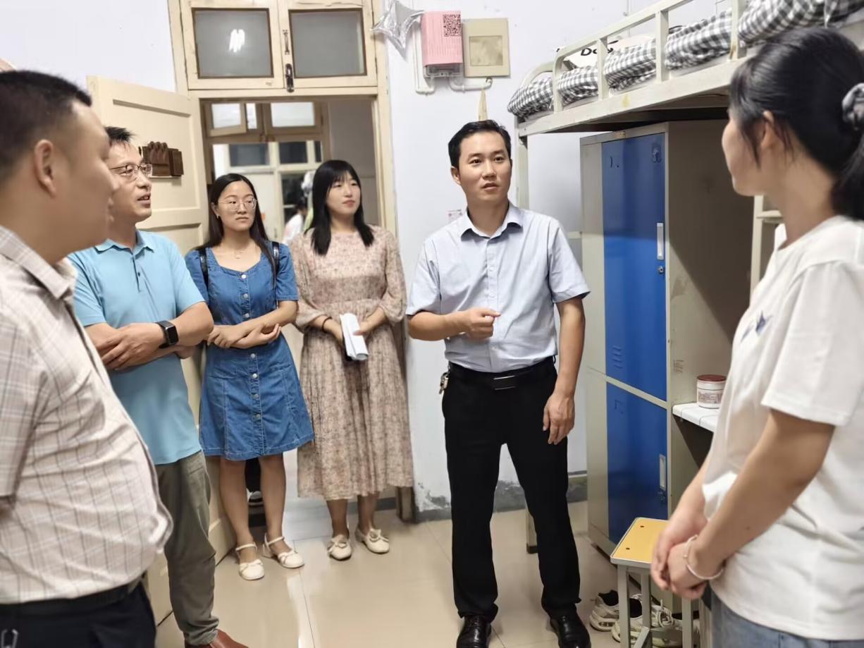 为深入了解学院新生情况,帮助新生尽快适应大学生活,9月8日晚,学院领导班子成员、各系主任、2024级辅导员、班主任老师前往2024级新生宿舍开展走访慰问,深入了解新生住宿及生活情况,为同学们送去温暖和关怀。