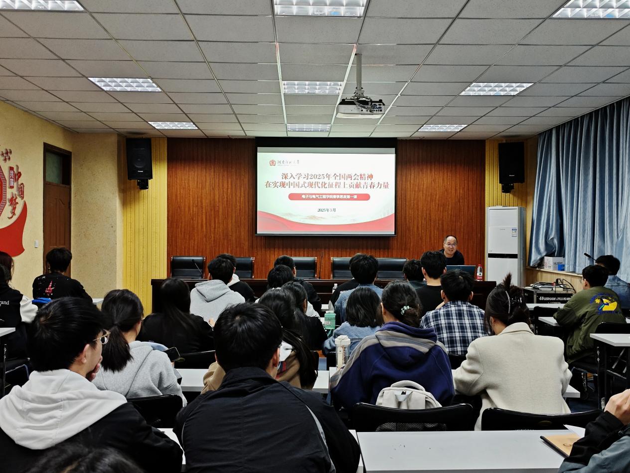 为深入学习2025年全国两会精神,引导青年学生坚定理想信念、积极投身时代发展,3月20日晚,我院在学院C208会议室开展春季开学思政第一课。思政课由学院党委书记高飞主讲,2024级学生参加。高飞从党的二十届三中全会的重大意义、全面深化改革的总目标、重大原则和重大举措等方面对党的二十届三中全会精神进行了详细解读。围绕全国两会的提出的新理念、经济社会发展总体要求和政策取向、重点工作等方面,对2025年全国两会重点内容进行详细阐述。他强调,新一轮科技革命和产业变革深入发展,为青年发展提供了广阔舞台,同学们要抓住历史机遇,在时代大潮中实现人生价值;树立远大理想,将个人发展融入国家战略,培养家国情怀;要脚踏实地,夯实专业基础,积极参与社会实践,勇于创新,敢于探索,将理论知识转化为实际成果。
