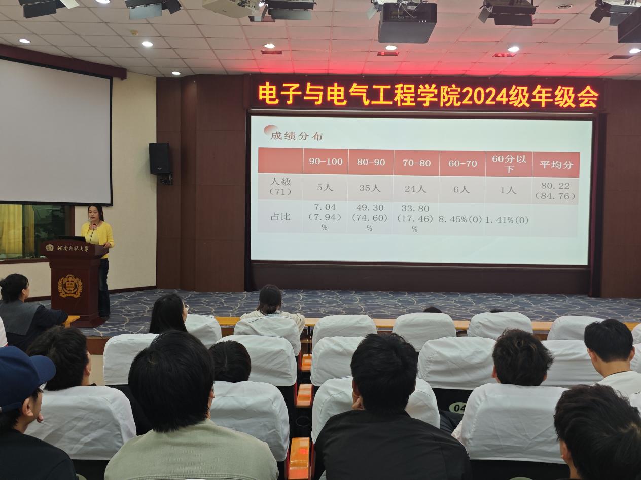 会上,王子月依托多维度学业数据,对2024级学生大一学年的整体学习成效作了全面、客观的总结与分析。她介绍了学年内公共基础课、专业必修课的成绩分布以及平均学分绩点、专业排名的具体结果,充分肯定了年级整体在学业上取得的阶段性成果,指出了当前学业发展中暴露出的突出问题,并进行了原因分析,如部分学生数理基础课程存在薄弱环节、学习适应性与自主性有待加强等。她对大二学年的学习任务与发展途径提出了明确要求,强调全体学生要牢固树立专业思想,优化学习方法,强化实践动手能力,积极参与学科竞赛与科研项目,为后续专业课程的深入学习及长远发展构筑坚实根基。
