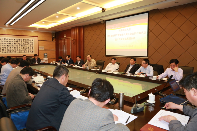 3月29日下午,我校第五届教职工暨第十六届工会会员代表大会第八次会议主席团会议在勤政楼第三会议室召开。校领导赵国祥、常俊标、臧振春、陈广文、李雪山、马治军、张尚字、刘玉芳出席会议。第五届教职工暨第十六届工会会员代表大会第八次会议主席团成员参加了会议。会议分两个阶段进行,会议的第一阶段由校长常俊标主持,会议的第二阶段由校党委书记赵国祥主持。