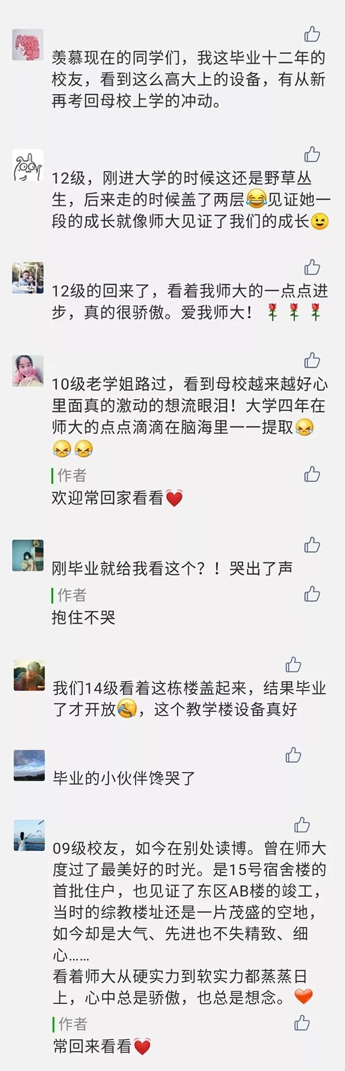 不过,东区综合教学楼的建设是为了给同学们提供更多的学习场所和更好的学习环境,爱护还是萌新的它,是师大所有师生的责任。希望在越来越好的师大里,所有的师大人都能度过最美好的时光,成长为自己最喜欢的模样!