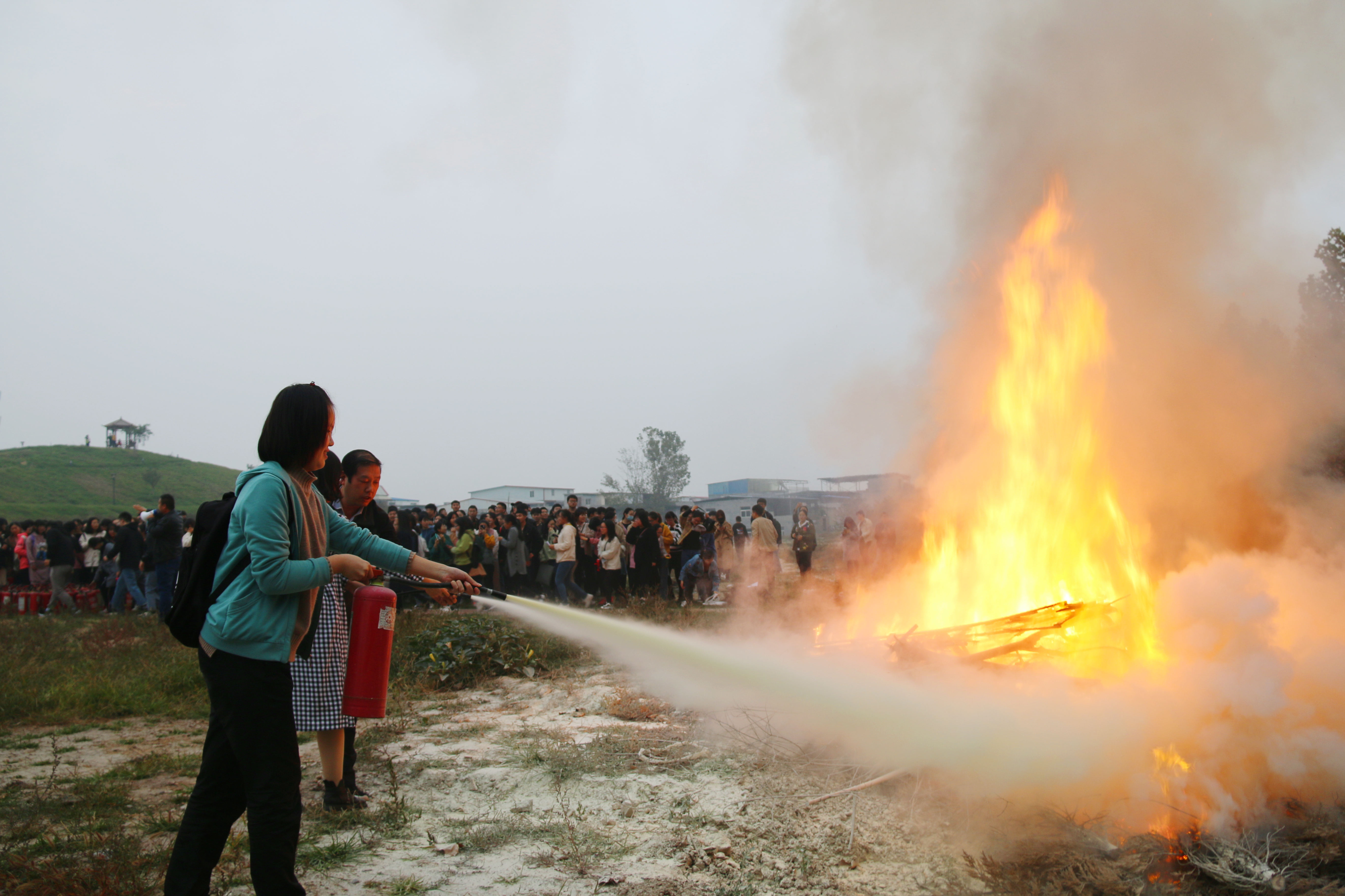 实操环节中,部分师生在保卫处相关工作人员的协调与指导下,积极拿起灭火器进行尝试,主动将培训内容应用于实践之中。现场活动氛围热烈,学生参与热情高涨。