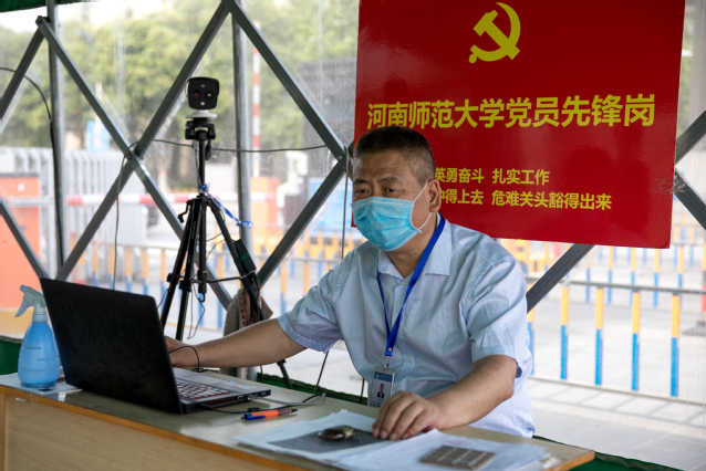学校大门往来人员多,流动性大。他总是不厌其烦地向每一辆车每一个人讲解学校疫情防控期间的规章制度,严格按照有关规程对车辆及人员进行排查登记、身份核验、体温检测。不知不觉中已是由冬到夏,其间,无论是寒风凛冽还是烈日酷晒,他始终以一名合格党员的标准坚守在党员先锋岗上。