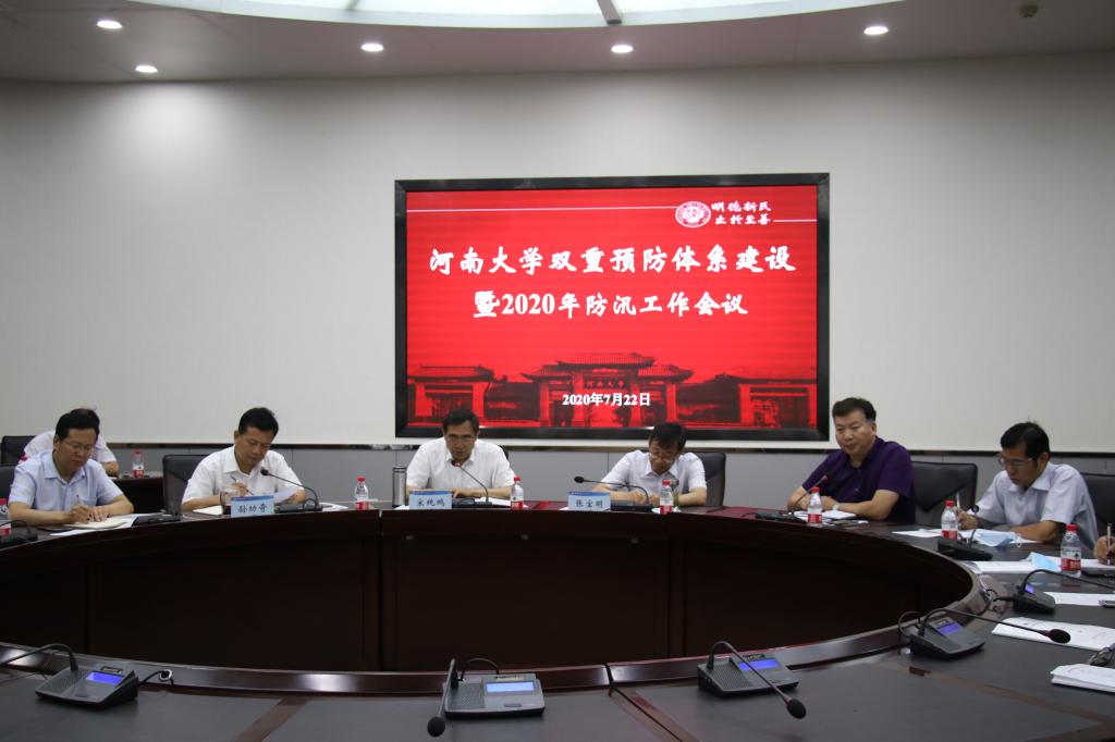 张宝明首先传达了教育部办公厅《关于全力以赴做好学校防汛抗洪抢险救灾工作的通知》、河南省教育厅《河南省教育系统2020年全面推进安全风险隐患双重预防体系建设工作方案》。保卫处处长谢清溪、党总支书记王志乾分别传达了《河南大学推进安全风险隐患双重预防体系建设工作方案》、《河南大学2020年防汛工作意见》。