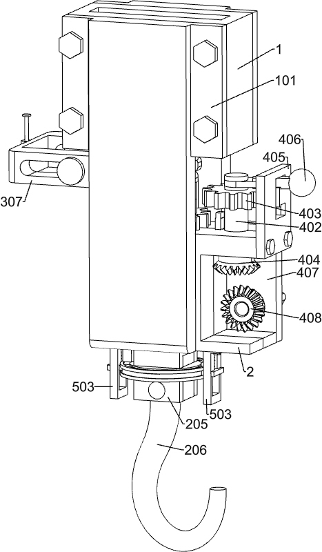 本发明涉及一种定位装置,尤其涉及一种吊钩防旋转定位装置。技术问题为:提供一种可以在吊起和放下货物时自动调节吊钩状态,并且便于勾住货物的吊钩防旋转定位装置。技术方案是:一种吊钩防旋转定位装置,包括有连接座、连接板、承载座、主动轴、第一压盘、第二压盘等;连接座上对称的固接有两个连接板,两个连接板上共同固接有承载座,承载座上转动连接有主动轴,主动轴上固接有第一压盘,主动轴上连接有第二压盘,主动轴上套有用于推动第一压盘和第二压盘向上复位的复位弹簧。通过吊钩、连接块、限位机构、限位槽和六棱柱的配合克服了现有技术中的吊钩不能在吊起和放下货物时自动调节吊钩的状态和调节的效率较低等缺点。