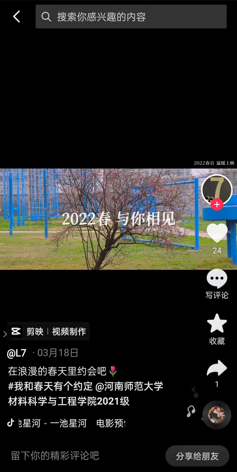 为让疫情下的校园生活丰富多彩、充满意义,材料科学与工程学院宣传小组特组织“我和春天有个约定”——短视频大赛,让同学们用视频记录下“我和春天的约定”,为绚丽的青春留下美好的瞬间。本次大赛于3月19日正式开始直至4月10日结束,共有54人参赛,经过评比,周佳,陈钰杰两位同学获得特等奖。