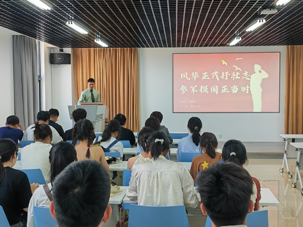 为鼓励广大有志青年学子投身国防、献身军营,5月14日下午,材料科学与工程学院于实训楼1113教室举办“风华正茂抒壮志,参军报国正当时”主题征兵宣讲会。学院2022级退役学生郭帅克应邀主讲,学院相关负责人和全体2020级全体毕业生参加了会议,会议由辅导员吴呈珂老师主持。