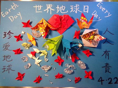 活动开始,学生会相关学生干部现场讲解了“世界地球日”的由来与意义,紧密结合今年地球日的主题,介绍了我国资源现况及部分环保知识小窍门,加强了同学们的环保理念,增强了同学们对废电池回收利用的意义与垃圾分类的标准等知识的认知;在此基础上,为了充分调动大家的积极性,号召同学们从身边小事做起,珍惜资源,学生会组织部分学生发挥各种才艺,通过折纸,绘制环保宣传画等多种方式来表达自己的主人翁意识。一些同学用废旧纸张制作了各种形态逼真的折纸,充满趣味性与启发性,以节约资源,废物利用的方式宣扬了环保理念,表达了对地球家园的热爱。